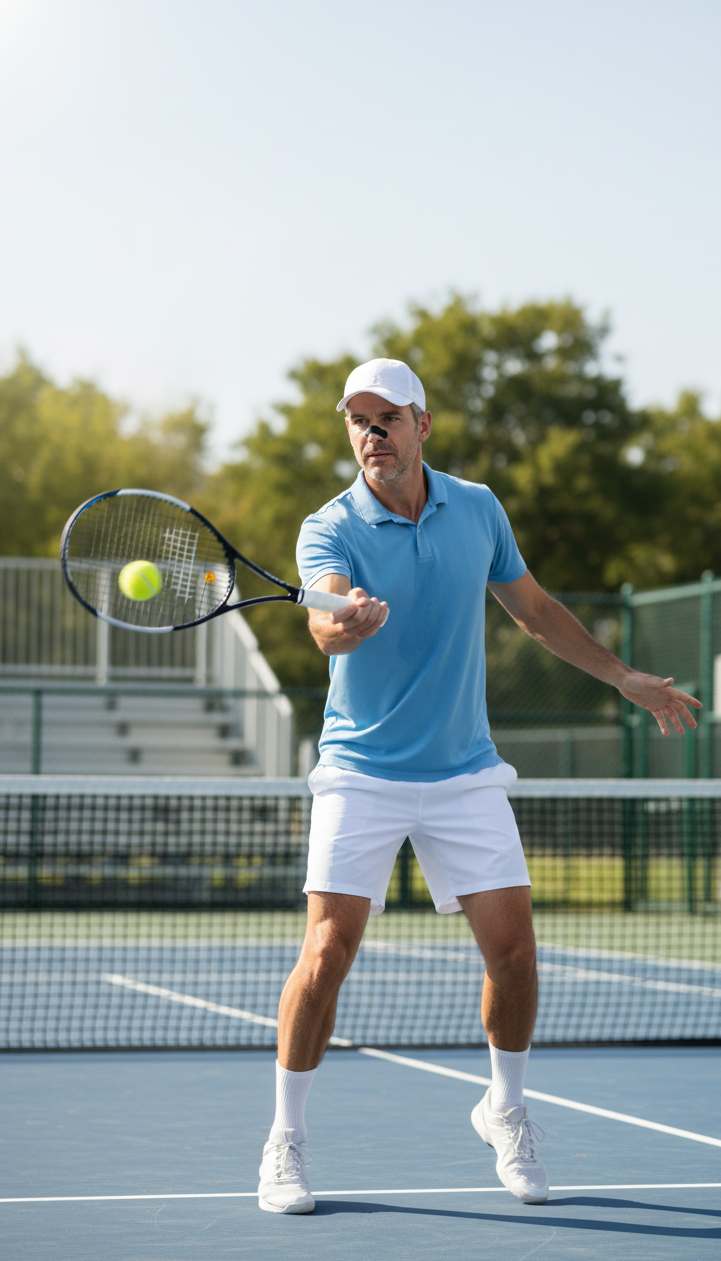 - Sportler, die Nasenpflaster für eine bessere Atmung während der Anstrengung verwenden